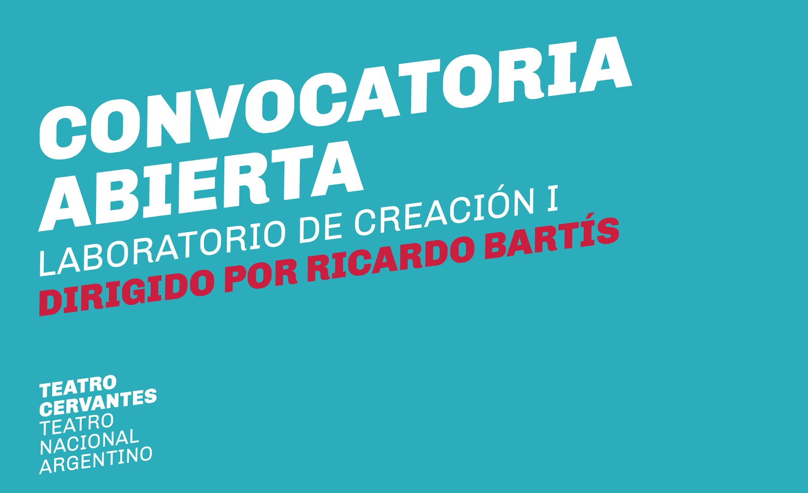 El Teatro Cervantes - Teatro Nacional Argentino convoca a actores, actrices, directores y directoras para participar del Laboratorio de Creación I, dirigido por Ricardo Bartís.